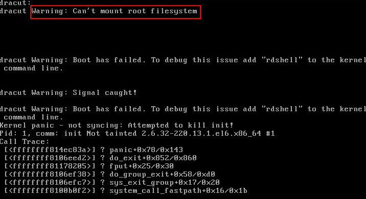 使用CentOS 6.2的系统,若出现重启后,ping不通服务器的外网。 且多次重启后系统都无法正常启动,报错信息如下:
