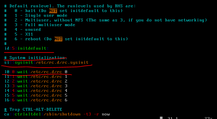 - 设定系统默认启动级别