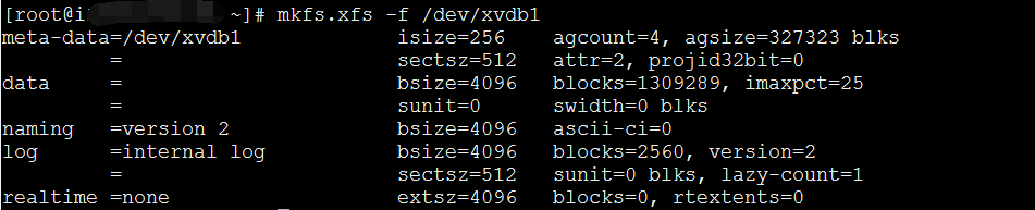 3. 格式化新的数据盘:mkfs.xfs -f /dev/xvdb1