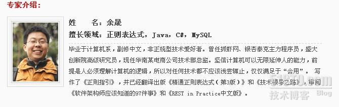 本期特邀华南某电商公司技术总监余晟老师,针对正则表达式问题给予解答,欢迎网友积极提问,与专家一起讨论!