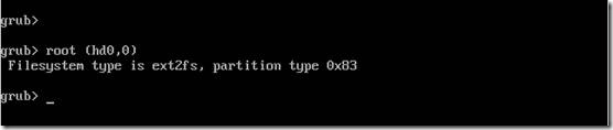 我们输入root (hd0,0),这样,我们告诉了计算机,在硬盘的第一个硬盘的第一个分区,并以root身份来访问