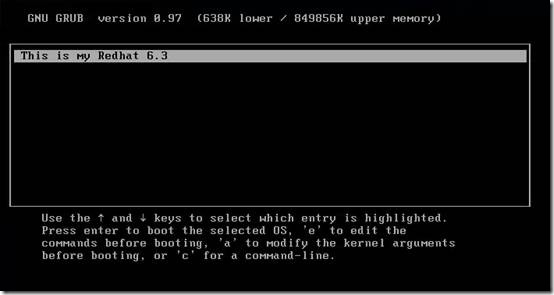 如果现在重启,就会进行grub那个界面,故障现象就是我们模拟的第一种,我们写输入root (hd9,0),显然,这不是我们想要的,每次启动都输入,那不是要疯了,所以我们手动建立一下,如下图