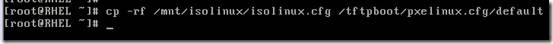 OK,现在我们把配置文件从光盘拷贝一份到我们的pxelinux.cfg中,给它来个新名字,default,命令如下