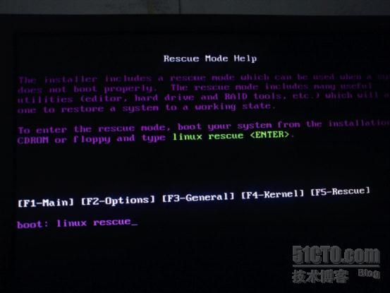 1/将安装光盘放入光驱,让计算机从光驱启动。到达安装界面,按F5进入救援模式。