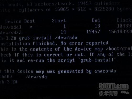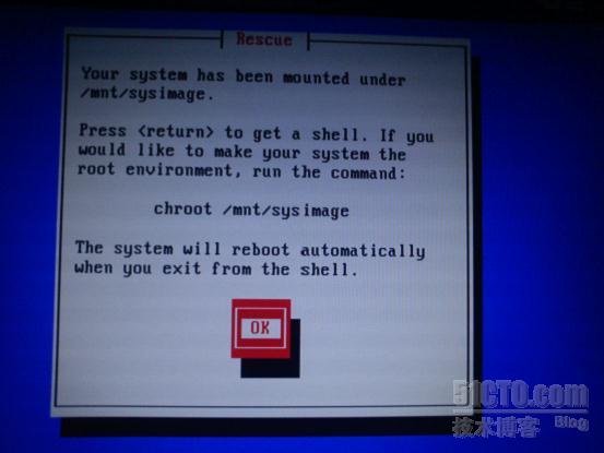 3/单击ok便进入了shell终端,我们需要使用chroot /mnt/sysp_w_picpath来进入我们新建的这个虚拟终端。我们通过原来的错误提示知道是因为selinux的原因造成内核受伤启动不了。我们使用enstatus查看一下状态,是开启状态。我们关闭selinux,然后我们查看一下磁盘结构fdisk -h可以看到我们的磁盘是sda模式的磁盘插槽,我们使用grub-install /dev/sda将新的grub写入到磁盘中,最后如果出现“this device is generalted by……”表示安装成功,然后reboot即可。