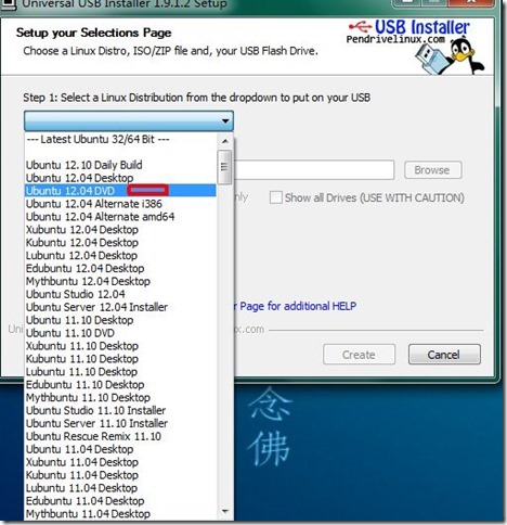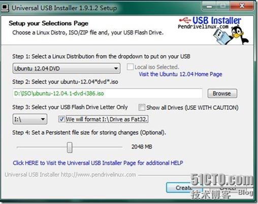 最新版本为Universal-USB-Installer-1.9.1.4.exe – October 23, 2012,相比着之前的版本,增加了对ubuntu 12.04的DVD版的支持。