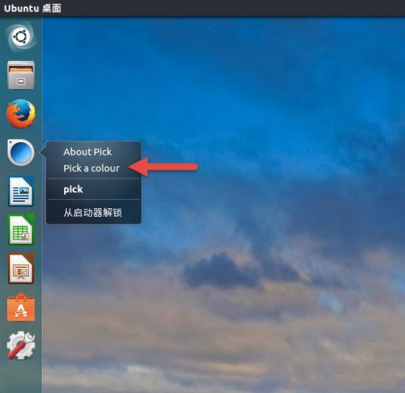 右击 Unity Launcher 也可以帮助我们快速拾取颜色。