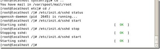 3. 由于出现“无法通过SSH访问源计算机”的报错,导致无法进行远程计算机的访问,首先解决这个报错,方法如下,登录redhat主机,运行命令查看SSH状态,如未开启,用/etc/init.d/sshd start开启即可,如图1.3所示。