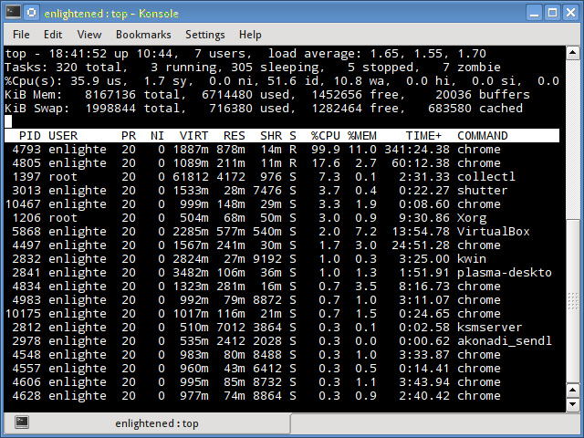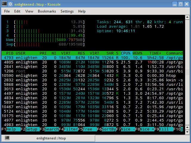 这是最能得到你喜爱的命令行工具。它的功能和top相似,但是更加精致并且多一个漂亮的系统负载界面。它的安装并不是默认的,但是在Ubuntu和Fedora这样的发行版套件上则默认可用。