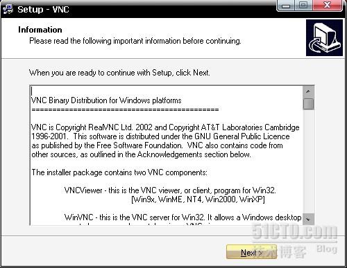 提示欢迎安装VNC,单击Next