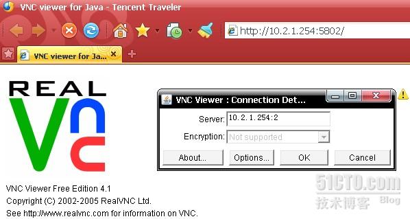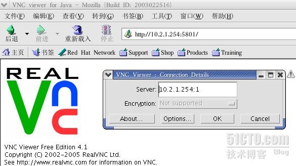 打开浏览器,输入http://服务端IP:端口号5800+桌面号,如服务器地址为10.2.1.254,在上面的对应表中,1号桌面的对应端口号为5801,即http://10.2.1.254:5801,打开该地址后,会出现Java小应用程序的登陆框,单击OK