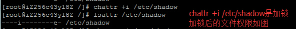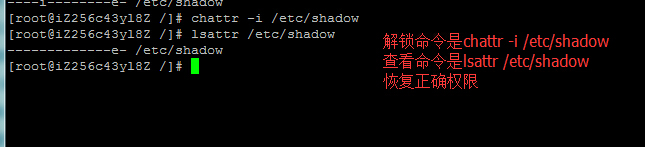建议在操作前,对该文件解锁,使用chattr -i /etc/shadow即可解除该锁权限。 |