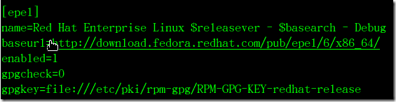 默认的rhel6光盘中没有cobbler软件,必须在yum仓库中设置第三方的软件源,才能安装cobbler等软件。这里用的epel软件源,在yum仓库的配置文件中加入以下语句即可: