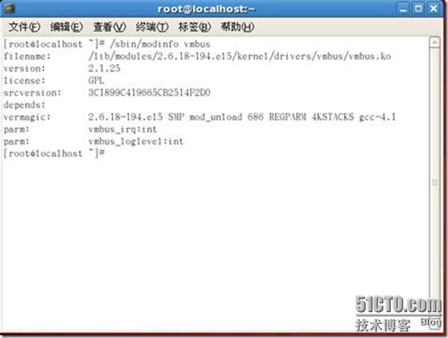 8. 最后使用 /sbin/modinfo vmbus命令来验证Hyper-V添加件的安装完成。