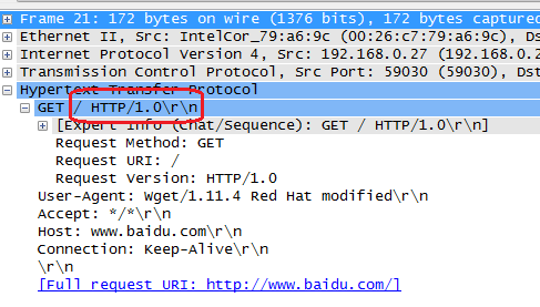 从上面Wireshark的解码截图,我们可以非常明显的发现,两个命令请求http://www.baidu.com 的HTTP请求的头部有很大的区别。