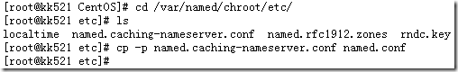 5、 进入域名服务的主配置目录,/etc下面有相应的模板我们只要复制编辑就可以。-P表示保持原来的属性不变。