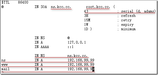 9、 编辑正向区域“kcc.cc.zone”;需要我们编辑红色已经标记出来。