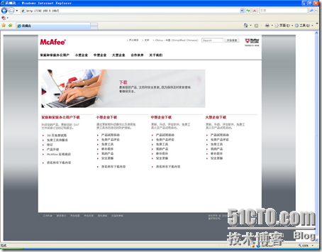 在IE地址栏中输入192.168.0.188就可以打开我们制作好的首页,偶借用了下McAfee的首页试试效果,呵呵~~~