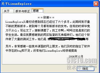 由于个人原因,我最后没有选择去无锡工作,甚至都没有再联系过那个面试官(没有留下他的联系方式)。不过能得到一个素昧平生的人的赏识,实在是一件幸福的事,也许其中更多的是一种惺惺之情吧。工作以后,由于研究方向及兴趣的转变,再也没有进行过计划中的LinuxExpore的重构和扩展工作,而LinuxExplore也进入了实质的死亡状态。偶尔还能收到网友发来的bug汇报和修改建议,我总是不无惆怅的给予回复:很抱歉,LinuxExplore目前已经停止开发了。无聊时,在baidu中输入LinuxExplore,发现还是能搜到一点东西,甚至还能下到最后的0.95版,打开软件,那熟悉的界面,亲切而激昂的话语(版本致谢)让我止不住激动起来,那段激动人心的岁月似乎就在眼前!