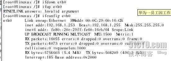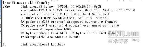请留意我的IP是192.168.1.253,下面我使用ifconfig修改参数