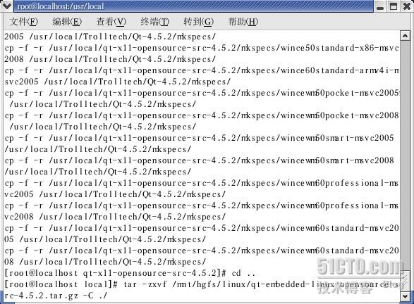 [root@localhost local]# tar -zxvf /mnt/hgfs/linux/qt-embedded-linux-opensource-src-4.5.2.tar.gz -C ./