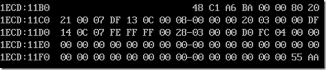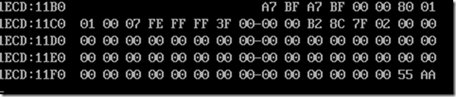 -D 11BE 11FF (显示分区表数据)