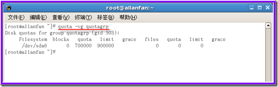 step 7:接下来学会怎么对组进行配额限定,直接用命令edquota –g quotagrp