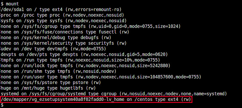如果你想在每次启动时自动挂载逻辑卷,在/etc/fstab中添加下面的行,你可以指定卷的文件系统类型(如 ext4),它可以从mount命令的输出中找。