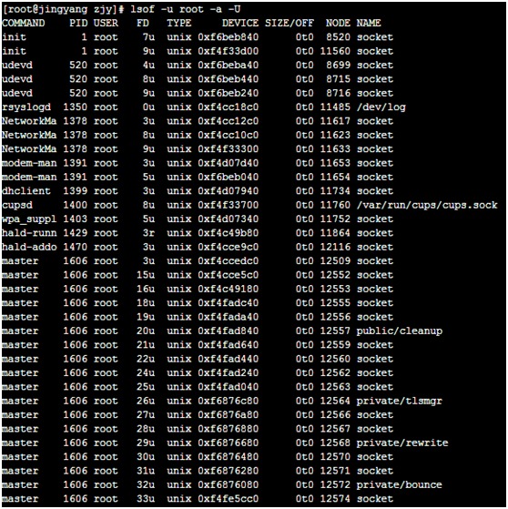列出所有root用户下的socket文件进程
