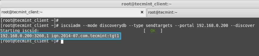 5. 这里我们从下面的命令输出中找到了iSCSI的限定名(iqn)。