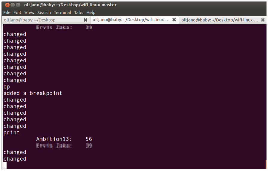 什么是wifi-linux根据github上作者账号的官方的 readme.md文件, wifi-linux是一个简单的收集你周围AP的RSSI信息的python脚本,它还会画出RSSI活动图形。 作者说可以在该程序中可以使用plot命令绘制RSSI 活动图形,但是不幸的是,这对我不可行。wifi-linux也支持其他的命令,比如bp 来加入一个断点,print会打印一些统计和启动开关。 wifi-linux程序有下面这些依赖: