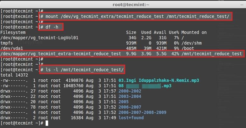 现在,让我们看看当前使用的改变大小后的逻辑卷。