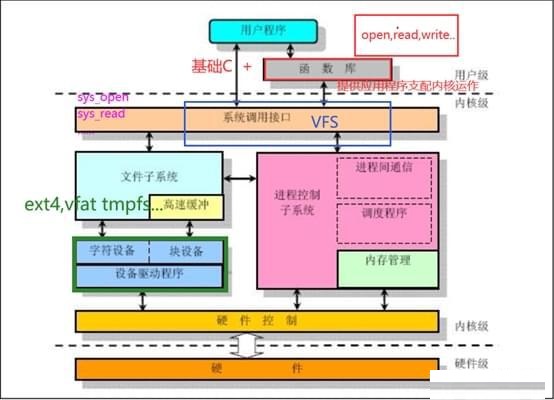Linux内核由七个部分构成,每个不同的部分又有多个内核模块组成,结构框图如下: