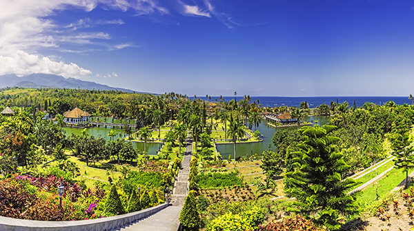 Sunny panoramic view of Ujung Water Palace / Bali Indonesia /