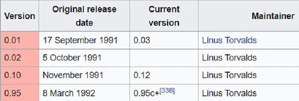 当 Linus 刚开始开发内核时,所使用的版本控制系统只是由一个从零(0.x)开始的递增变量方案组成。最初,Linus 是该项目的唯一工作人员,这个版本控制系统足以满足记录和分发新内核版本的需要。