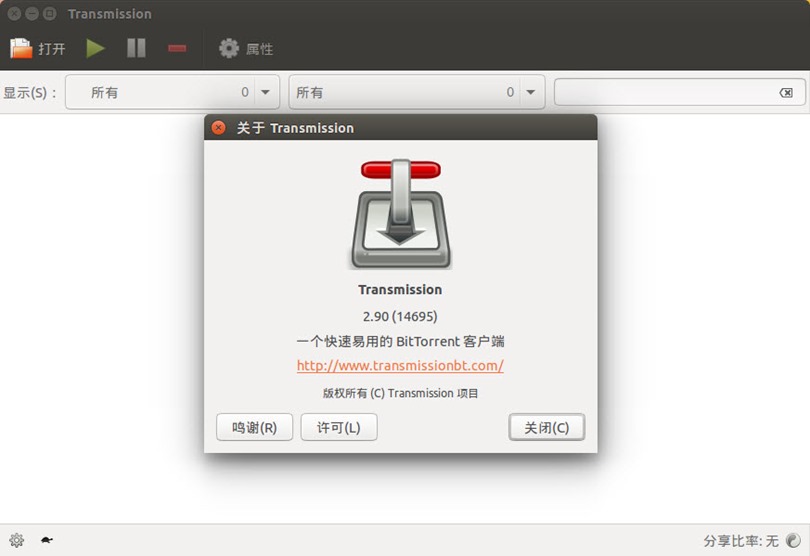 sudo apt-get install transmission - (可选)如果你想降级加 Ubuntu 系统内置的发布版本,可以使用如下命令: