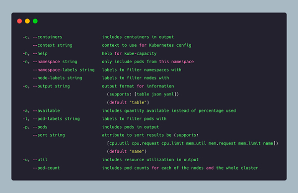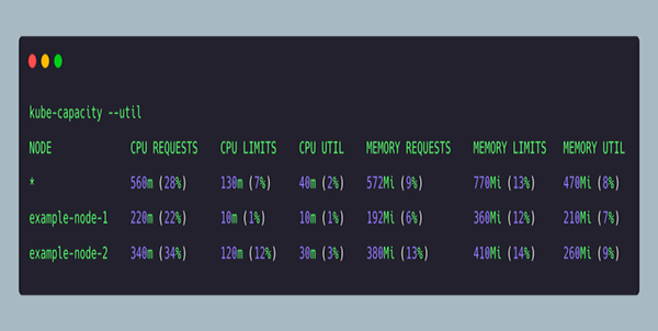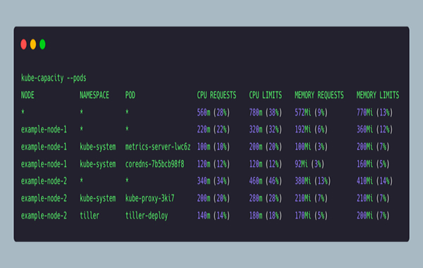 kube-capacity --pods --output json kube-capacity --pods --containers --util --output yaml