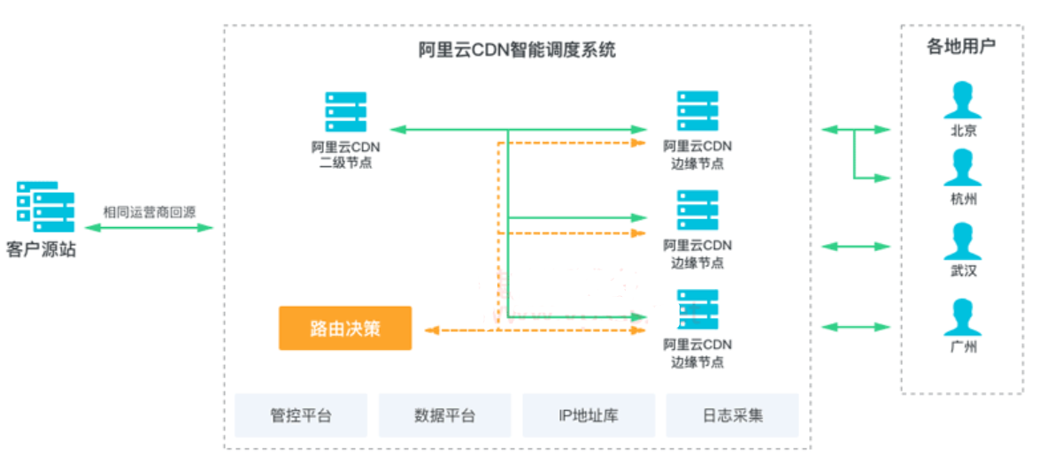 是网站中最常用的加速功能。通过分布式服务器布局,把网站业务内容缓存到各地的云服务器中,供访客就近访问。所以使用了 CDN 的网站业务,打开速度特别快。