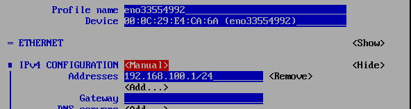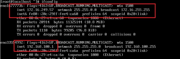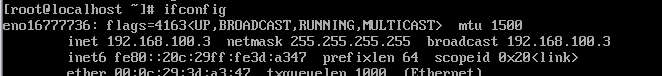 [root@localhost ~]# nmtui # 配置方法同上,此处省略 … ... [root@localhost ~]# systemctl start network.service [root@localhost~]# ifconfig