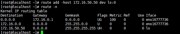 [root@localhost~]# route add -host 172.16.50.50 dev lo:0