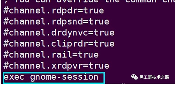 设置Xrdp使用GNONE,编辑配置文件,添加如下行