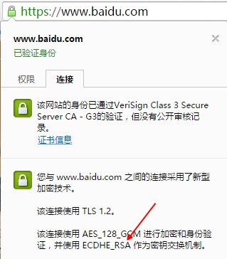 - 内容加密。浏览器到百度服务器的内容都是以加密形式传输,中间者无法直接查看原始内容。