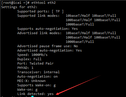 如果Link detected:no 的话,尝试用命令ifconfig eth2 up,如果用ethtool查看任然为no的话,才能说明此网卡确实没有网线插入。
