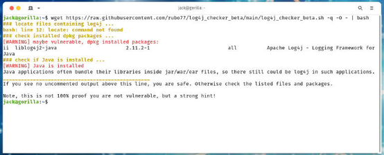 幸好,GitHub用户Rubo77针对Linux服务器创建了一个脚本,可用于检查含有容易受到攻击的Log4j实例的软件包。它处于测试版阶段,并非百分之百可靠,不过使用它是很好的起点。要明白,该脚本并不测试与应用程序一起打包的jar文件,因此它只是您开始剖析漏洞的一个起点而已。