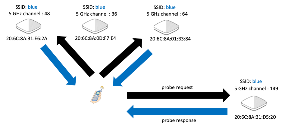 设备在接入AP后,该AP会将其附近AP的BSSID和频道信息发送给用户。这样一来,用户在需要切换到另一个AP时,就不用再扫描一遍频道了。