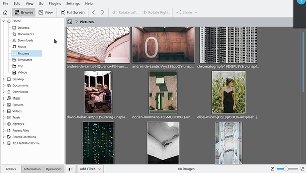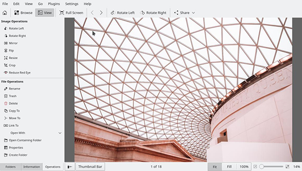 Gwenview 拥有桌面照片管理器的所有必需功能。如果你需要的不仅仅是基本功能,你可以在 Krita 或???Digikam???中打开一张照片,并根据需要进行重大修改。对于其他一切,从浏览、排名、标记和小调整,Gwenview 都很方便。