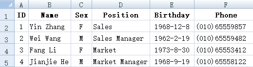 =A1.query("select * from d:/excel/info.xlsx where Sex=’M’")