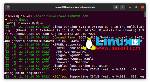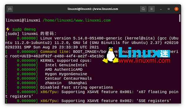 linuxmi@linuxmi /home/linuxmi/www.linuxmi.com ⚡ sudo dmesg