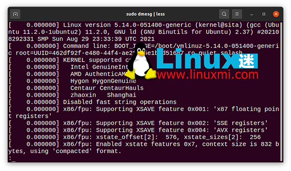 linuxmi@linuxmi /home/linuxmi/www.linuxmi.com ⚡ sudo dmesg | less