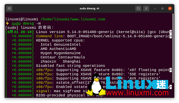 linuxmi@linuxmi /home/linuxmi/www.linuxmi.com ⚡ sudo dmesg -H